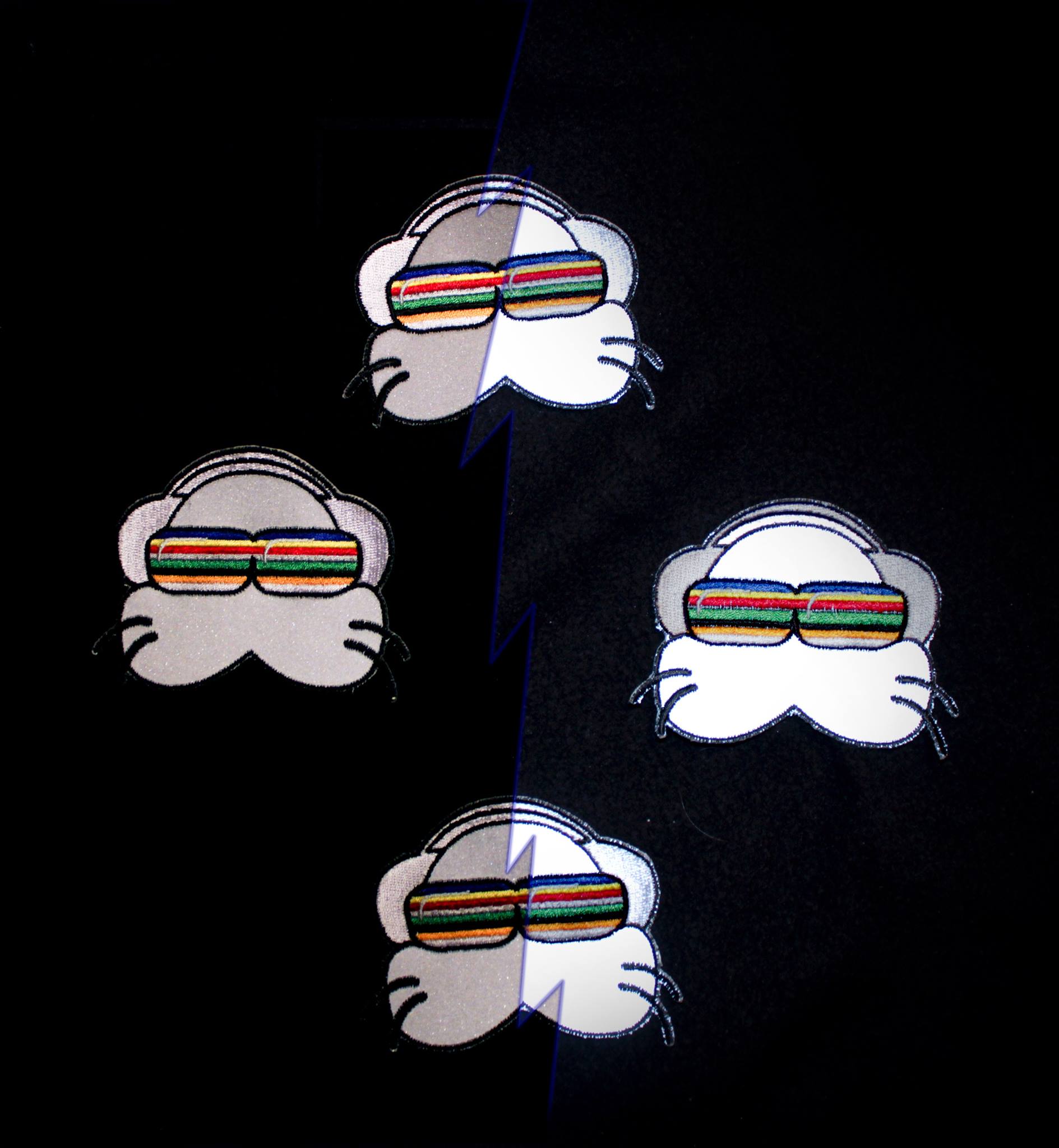 Heijastavalla kankaalle varustettu merkki. Taustalla komeilee (melkein) kaikkien Lappeenrannan kiltojen ja ainejärjestöjen värit.